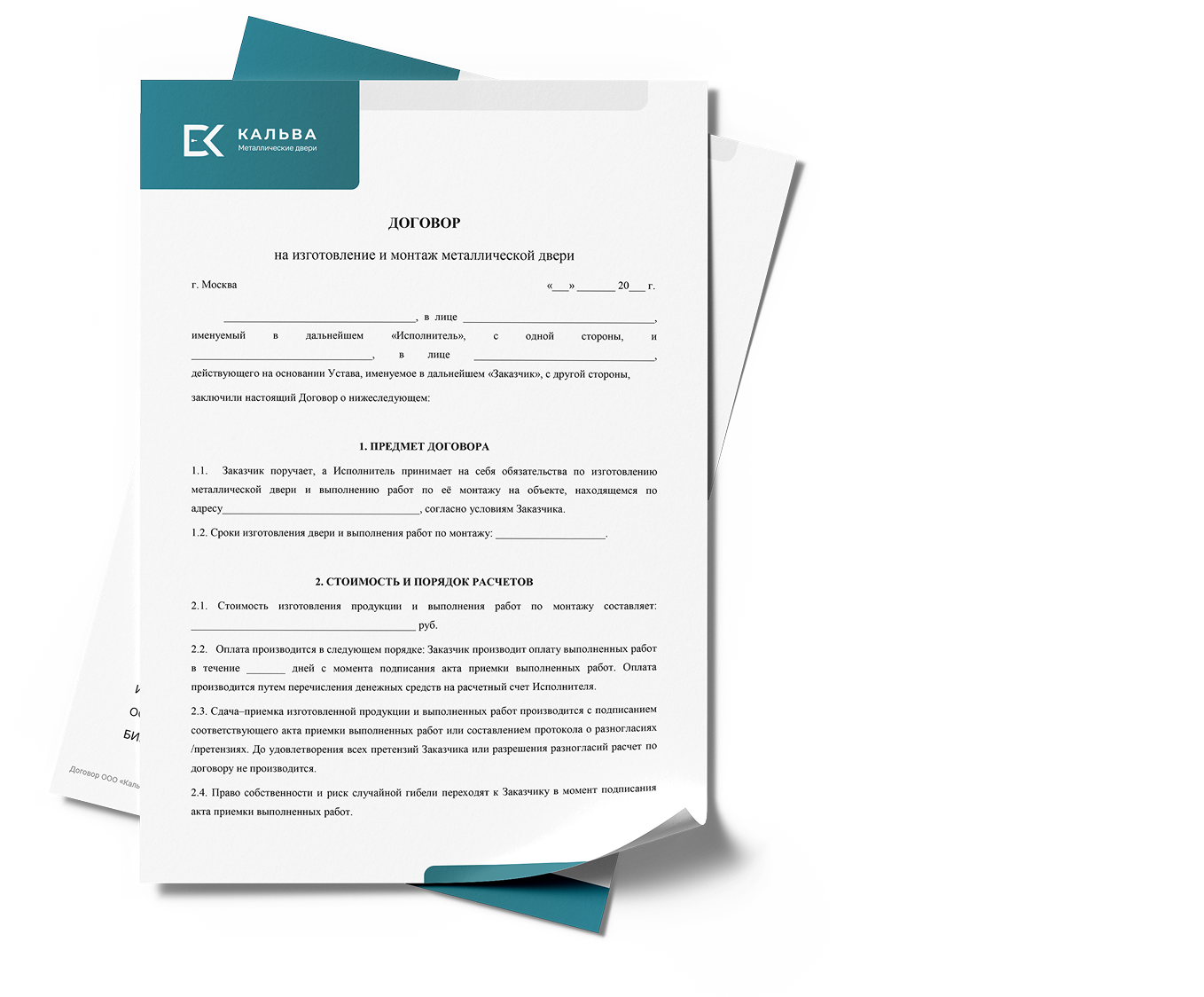 «Двери Кальва» — это собственное производство металлических входных дверей полного цикла. С 2004 года мы изготавливаем и устанавливаем двери в Химках и Московской области, обеспечивая высший уровень качества. Мы предлагаем решения для квартир, частных домов, коммерческих объектов и промышленных помещений: от стандартных моделей до эксклюзивных дверей на заказ по вашему проекту.